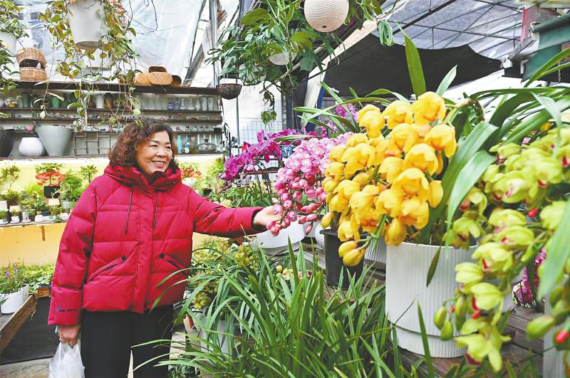 消费者在选购大花蕙兰。