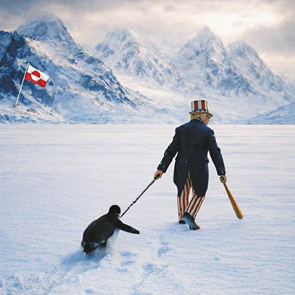 白宫24日在社交媒体平台X上发布一张人工智能合成图片,显示总统特朗普与一只举着美国国旗的企鹅在雪地上漫步。