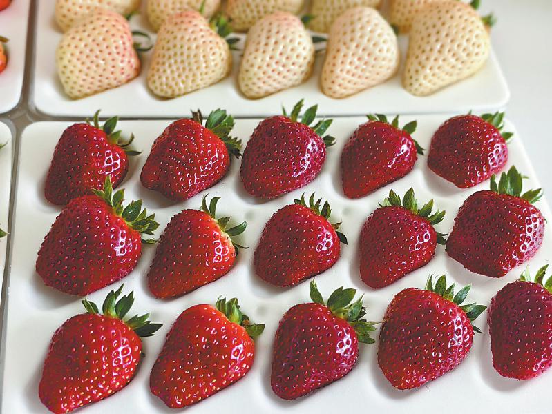 卖场内,黑草莓与白草莓搭配售卖。
