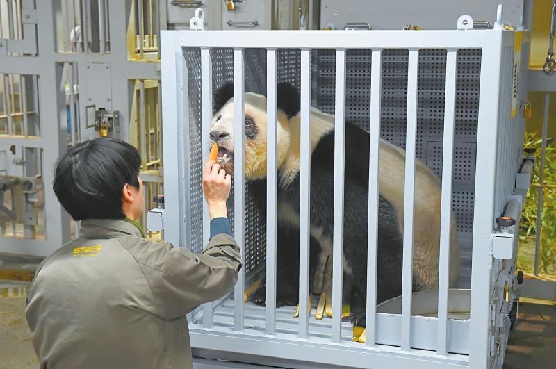 1月27日,在日本东京,大熊猫“晓晓”即将离开上野动物园启程回国。新华社发(东京动物园协会供图)