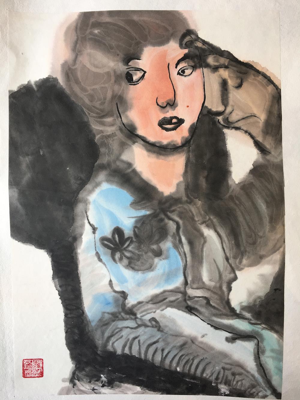 妈妈-国画-绵阳外国语实验学校-罗淑涵-9岁-指导老师刘金洪