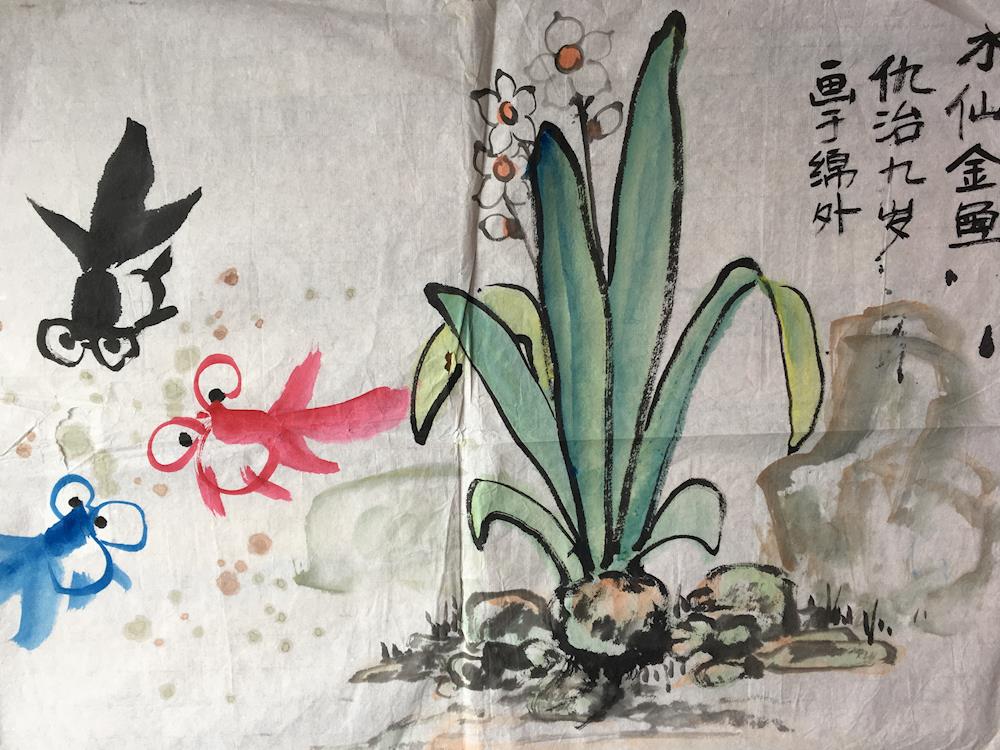 水仙金鱼-国画-绵阳外国语实验学校-仇治-9岁-指导老师刘金洪