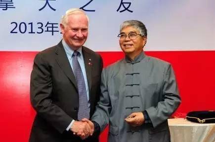 加拿大总督戴维·约翰斯顿(左)与老照片项目小组总顾问张飙(右)握手留念