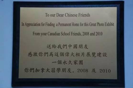2010年10月,笔者和张颖明、李爽代表老照片项目小组再次去加拿大参加他们的聚会。参加过新场展览开幕式的“CS孩子”的后代,用PPT给大家介绍了两次展览的盛况。“CS聚会委员会”为“加拿大老照片项目小组”授牌。牌上的中文是这样写的:“送给我们中国朋友,感激你们为这个伟大相片展览建设一个永久家园。你们加拿大同学朋友”。他们都非常向往能有机会回到新场镇的“家”看看。