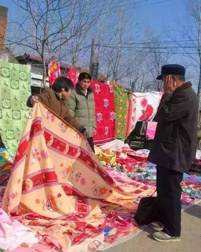 在大集上扯布,回到家自己缝制衣服、床单,总是能省下几个钱(图源:日照大众网)