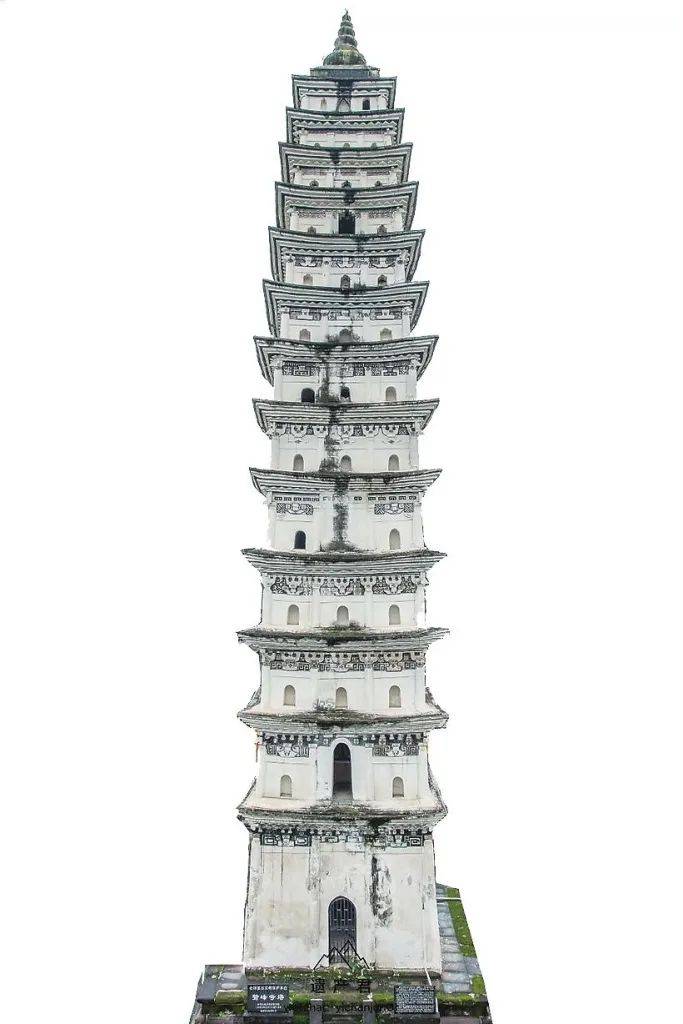 鹫峰寺塔一共13层,“皆以砖为之”。塔内也有石梯旋绕至顶。据说各层的塔室内均开凿设置了佛龛,而且龛壁均有彩绘、祥云等图案。不知当年,梁思成一行是否登上塔顶俯瞰蓬溪全城。如今的鹫峰寺塔已是全国重点文物保护单位。