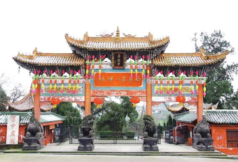 鹫峰寺,建于南宋,为一塔、寺结合的古刹丛林,位于蓬溪县城,建筑群面北,外有牌坊三间。