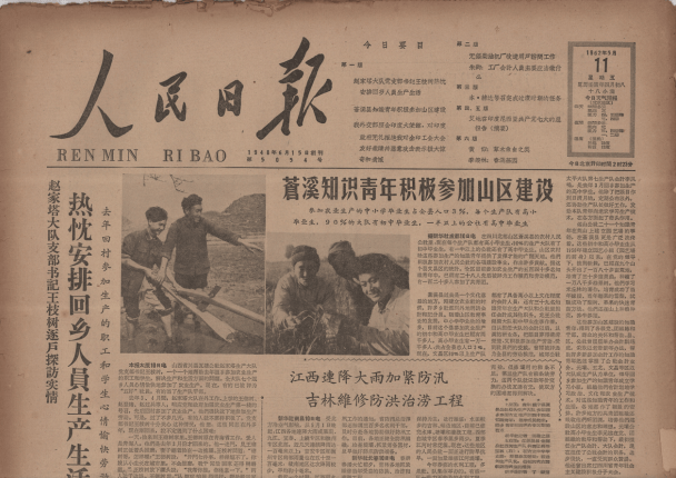 1962年5月11日《人民日报》报道《苍溪知识青年积极参加山区建设》(原苍溪县麻纺厂吴从宪藏)