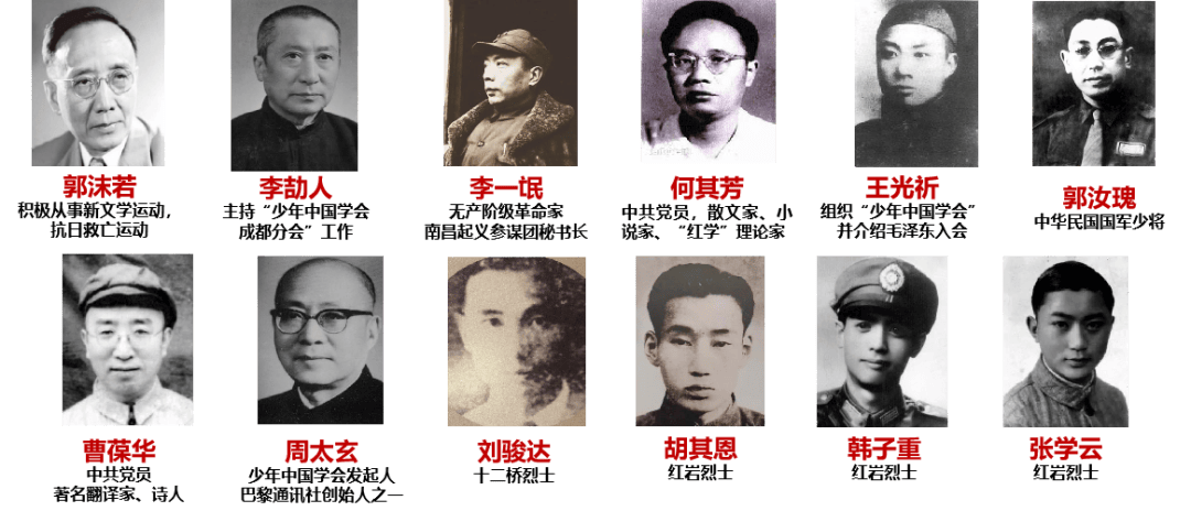 至近现代,生逢乱世,在民族需要之时、在国家危难之际,无数石室学子责无旁贷、挺身而出。戊戌变法时期,史称“戊戌六君子”的石室学子刘光第、杨锐见国难当头,支持维新变法,以鲜血警醒世人;张澜、蒲殿俊、罗纶领导四川保路运动,为辛亥革命奠定了基础;王光祈创立少年中国学会,用进步思想感染无数青年;李一氓投笔从戎,毅然投身革命洪流……抗日战争全面爆发后,无数石室学子放弃学业,抗战报国。