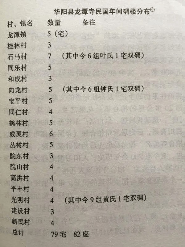 至清末民国时,成都东山一带的场镇与周边村落间出现了碉楼林立的景象。据史料记载,仅华阳县龙潭乡就有碉楼79宅82座,其中一宅一碉楼的有76家,一宅双碉楼的有3家。