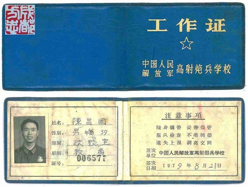 1979年,陈昌国在中国人民解放军高射炮兵学校学习的工作证(此图由张建独家提供,未经授权不得转载)
