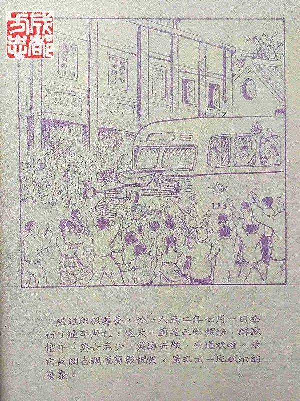 1952年,我虽然已是近12岁的人了,但我还在成都三教庵小学读初小二年级。新中国成立前因家里穷读不起书,直到成都解放后才上了学。7月1日前几天,就听老师和大人说要在北门上举行成渝铁路通车典礼,成都公共汽车也要在盐市口同时开通,还说这天坐车不要钱。我想这是真的吗?我还从来没听说过坐汽车不要钱的,何况我还从来没坐过汽车,更没有看到过火车。我下定决心,七一这一天,我一定要坐上公共汽车去看火车。
