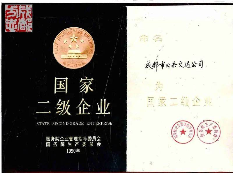 更令人欣喜雀跃的是,1990年底,成都公共交通公司被国务院企业管理指导委员会和国务院生产委员会正式认证为“国家二级企业”。