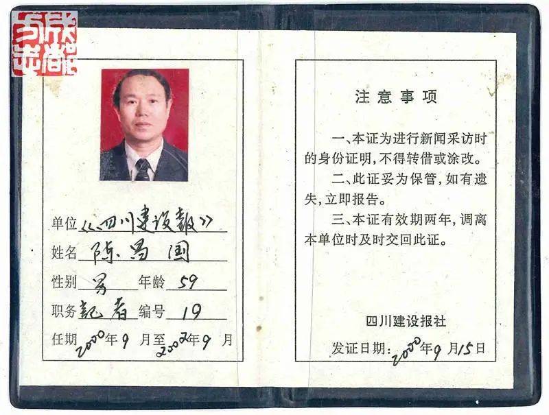 陈昌国在《四川建设报》任职的记者证(此图由张建独家提供,未经授权不得转载)