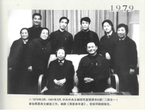 1978年5月,时任河南省出版局副局长的李白蕾被借调到中共中央文献研究室,参与编辑《周恩来年谱》,李白蕾和同志们受到了邓颖超的亲切接见。邓颖超见到熟悉的李白蕾,告诉她有什么问题可找她解决。李白蕾说:“邓大姐忙,我不能给您添麻烦,自己有困难自己解决,一切服从组织需要。”