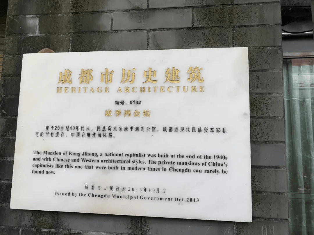 在成都市锦江区通盈街的繁华深处,高楼掩映间藏着一栋青砖青瓦的别致建筑,它既有川西民居的温润底蕴,又带着西式洋楼的灵动格调,这就是民族资本家康季鸿的公馆。该馆系成都近现代民族资本家私宅的罕有遗存,2013年被列入成都市人民政府列为第一批历史建筑保护名录。