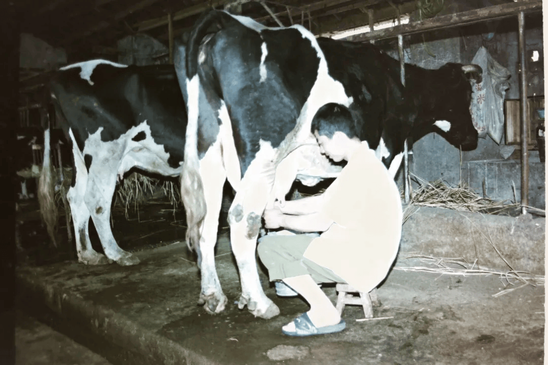 园艺场的职工正在挤牛奶(周晓平 摄)