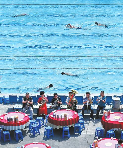 5月30日中午,管弦乐队在泳池边奏响“锅碗瓢盆交响曲”,这个有着54年历史的露天游泳池将曲终人散。
