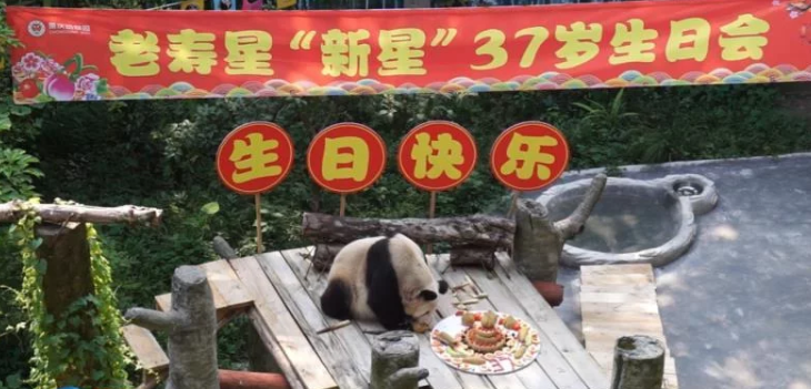 2019年8月23日上午,重庆动物园大熊猫馆为“新星”庆生(图片来自网络)