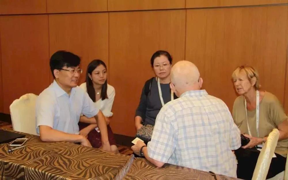 2018年8月26日,国际图联家谱与地方史委员会会议在吉隆坡召开,中国地方志学术交流团出席会议。图为来自挪威的Bozeman Rasmussen等与会代表专程从其他分会场前来聆听报告,并与中国地方志学术交流代表团进一步开展座谈(图片来源:方志天津搜狐号)