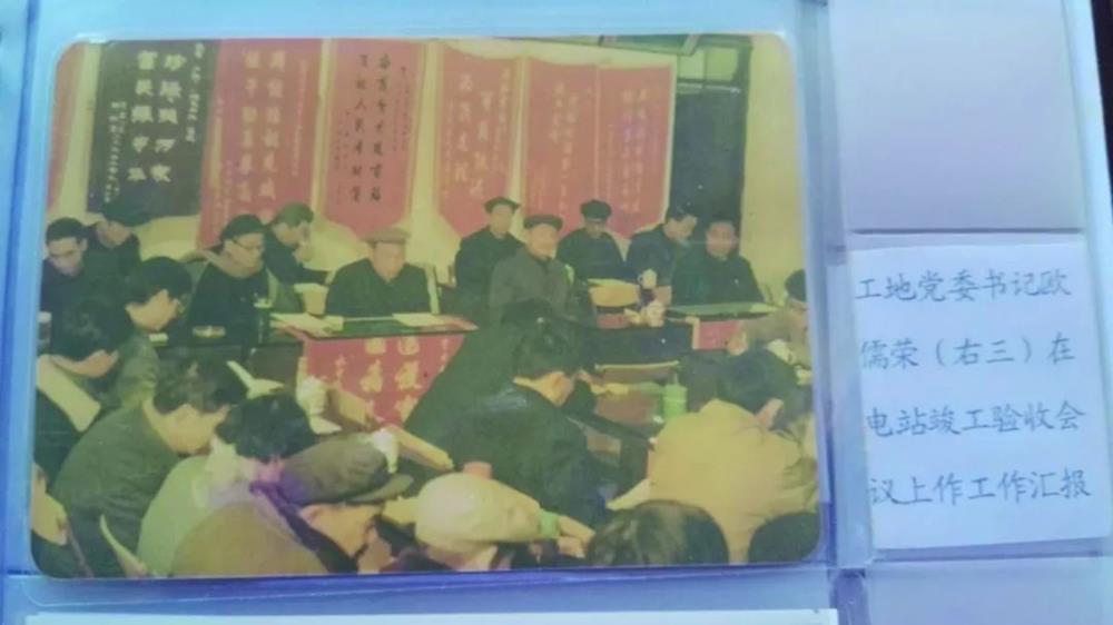 1985年12月24日,凉滩电站工地党委书记欧儒荣(右三)在电站竣工验收会议上作工作汇报(作者供图)
