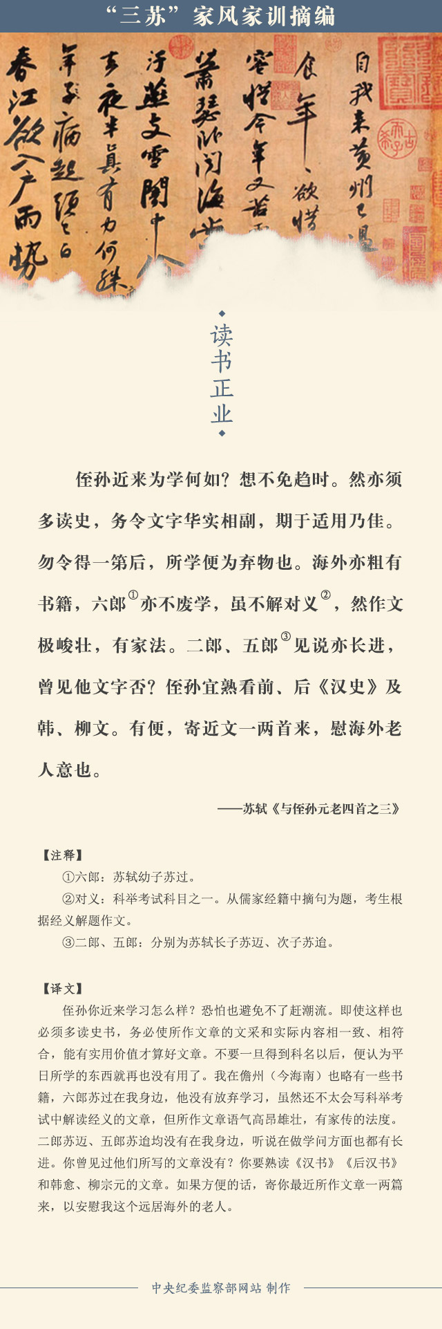 【家规·图解】苏东坡:功废于贪,行成于廉 来源:中央纪委监察部网站 发布时间:2017-03-07 20:49:00 浏览次数: 次 【字体:小 大】 http://www.ccdi.gov.cn/yw/201703/t20170306_95170.html 来源: 中央纪委监察部网站 分享到: 关闭本页 【打印正文】