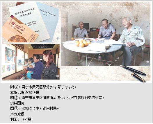 “他们土生土长,熟悉村情、民情,又有热情、激情。”武鸣区委宣传部副部长张华勇介绍,武鸣198个行政村,村村都成立了以老村干、老教师、老党员为主体的村史编撰小组,“据统计,每个村约有15人参与村史编写,全区就有近3000名‘土秀才’为留住乡愁献策出力。”