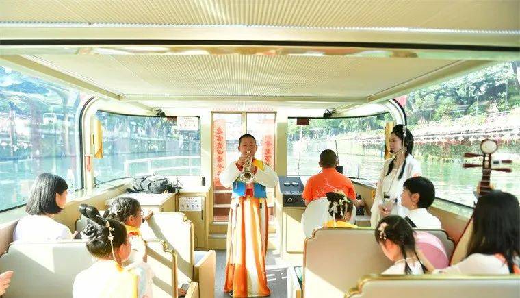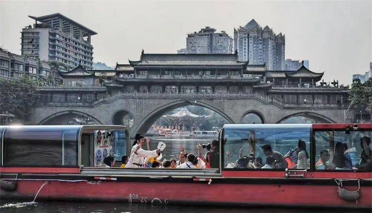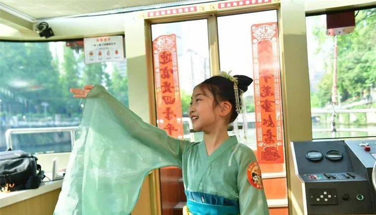 锦水汤汤,青城浩浩,水兴而城盛。身着汉服的少先队员们与家长们乘船从东门码头出发,一路经过合江亭、安顺廊桥、九眼桥等市内代表性地标。