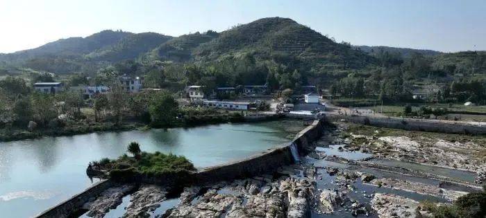 湖北崇阳白霓堰的石枧堰呈折线形(吴淘淘摄)