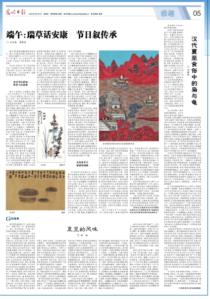 “端午安康”虽于史无据,但和端午“蓄药除毒”的悠久习俗相符。道一句“端午安康”,反映的是传统药俗观和卫护生命理念的延续,折射了当代中国人对和谐共生、顺应时序的追求。