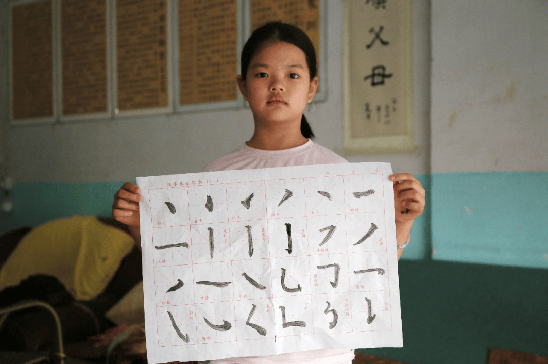书法课上,朱公公从笔画的起笔、行笔、收笔到笔画的组成等方面,详细讲解书法基本功,仔细指导学生的握笔姿势和书写习惯。慢慢地,孩子们逐渐掌握了正确的书写方法,笔下的字迹也愈发工整、美观。