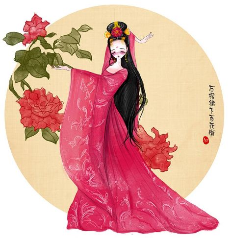 诗人将石榴花想象成天公攒合的深色胭脂,生动贴切。接着进一步把石榴花比作春驿中的美女西施,表现了石榴花的美丽神韵!唐代诗人于兰咏《千叶石榴花》:“若教移在香闺畔,定与侍人艳态同”也是将石榴花的娇态与香闺中的美女相类比,说石榴花和美女一样娇艳动人,人脸与石榴花相互辉映,写出了石榴花的娇艳之态。白居易《山石榴寄元九》中也赞道:“花中此物是西施,鞭蓉芍药皆嫫母”。
