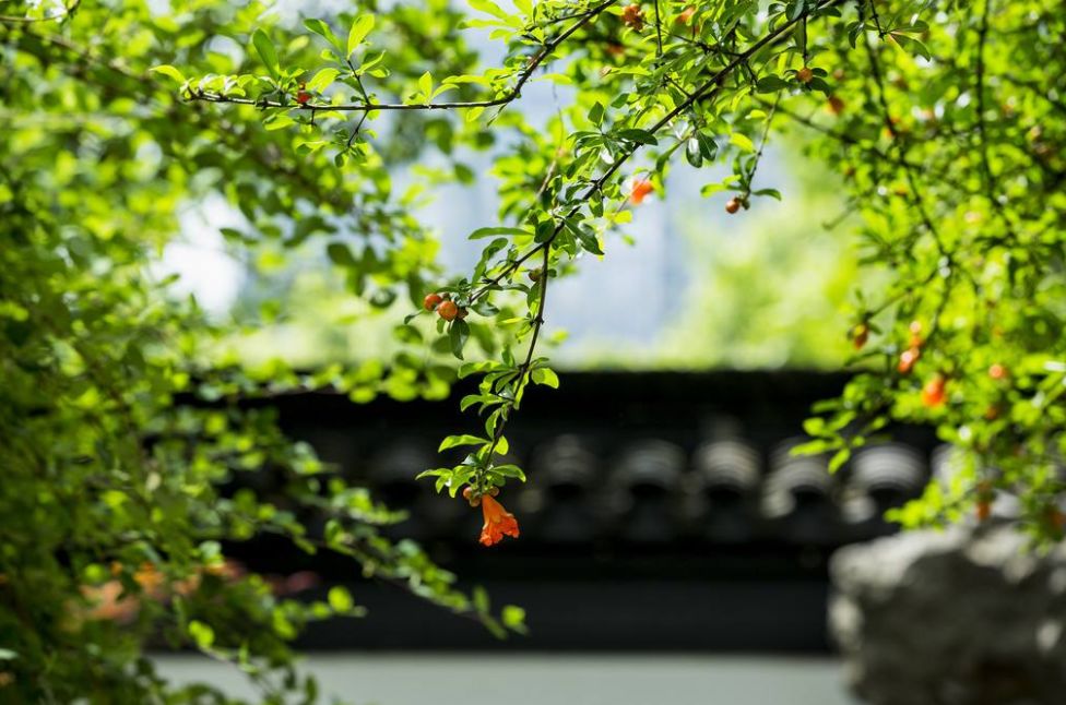 “别院深深夏席清,石榴开遍透帘明”。农历五月,正是初夏时节,莺声渐老、花事阑珊、春光远逝……还来不及为曾经姹紫嫣红开遍的春色悲伤惋惜,嫣红似火的榴花便已在绿荫间热烈燃烧、鲜亮夺目,似乎是为着即将到来的惊天动地做着伏笔。因为榴花,五月又被称为“榴月”。榴花“丹葩结秀”、热烈奔放又平凡质朴,榴花照水,照出了深宫闺阁中的繁华与哀怨,然而更多的是照出了红尘中的人间烟火,照出了寻常百姓的希冀与梦想。