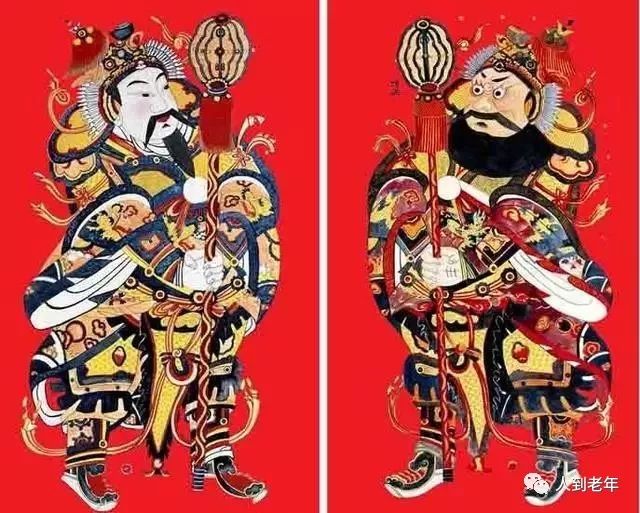 贴门神要注意两张门上的人物脸是相对的,不要贴反了。老式建筑的大门都是对开的两扇门,门神正好一边贴一张,而现在的住房都是单扇门,两张门神只能贴在同一扇门上,粘贴时要注意位置的美观大方。