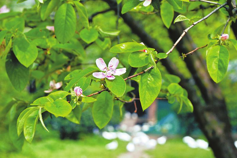 立春后不久,四川大学一处极不起眼的角落里,很少有人会注意,木瓜悄悄地开出了粉红色的花朵。和花朵簇生在一起的贴梗海棠不同,木瓜的花是单生的,花瓣淡粉色,显得更加的清灵可爱。