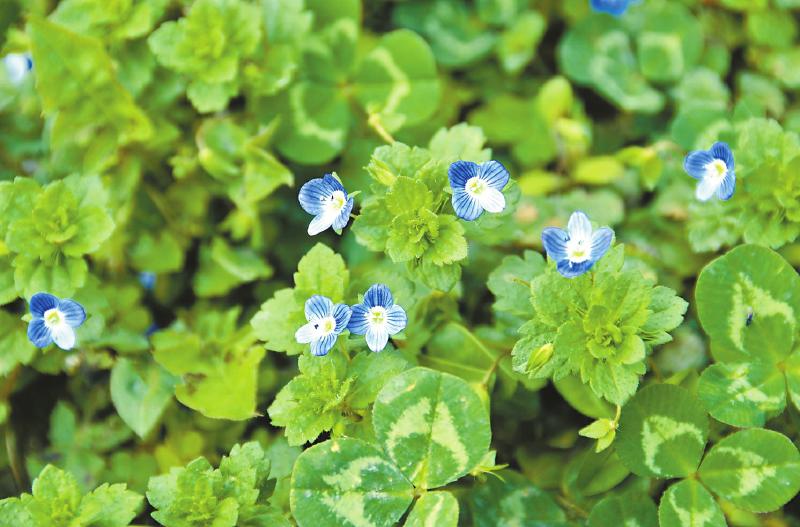 只是,它可不是靠着诱惑人类的宝石般的蓝色小花来获得成功的,而是它极好地适应了长江沿岸及西南部分地区的旱地,还能通过有性和无性两种繁殖方式不断繁衍后代,于是,阿拉伯婆婆纳在中国扎下了根,不断开枝散叶,子孙繁茂。总之,一个没有什么华贵身份的外来入侵杂草,竟然能让成都早春的小草坪有了几分高贵典雅的特征。