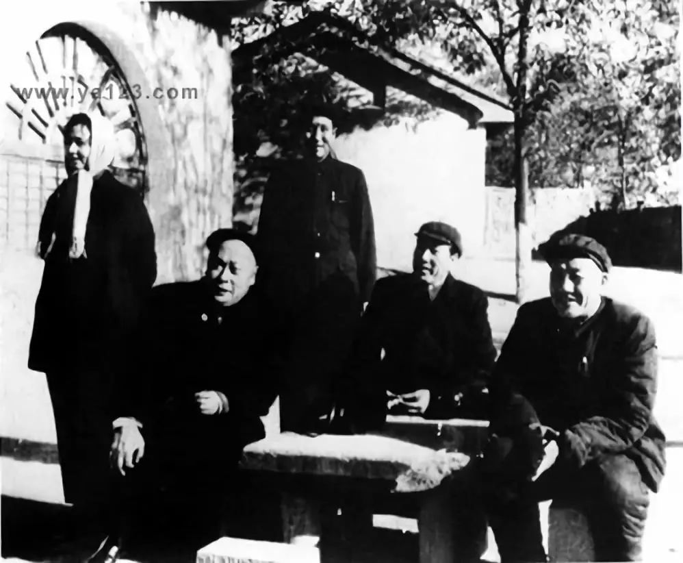 1959年,陈毅(左二)偕夫人张茜回延安时在枣园留影(图片来源:延安信息网)