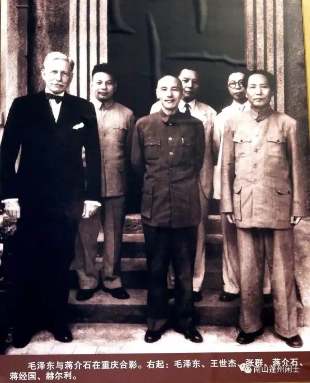 1945年毛泽东与蒋介石在重庆合影(2017年4月中国建筑工业出版社崔振林摄于延安革命纪念馆)