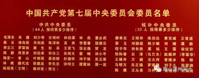 大会一致通过政治报告决议案、军事问题决议案和新党章,中共内部意见达到了空前的一致。大会以无记名投票方式选出毛泽东、刘少奇、周恩来、朱德、任弼时等44位中央委员、33名候补委员。