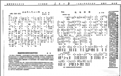 1951年9月15日的《人民日报》向全国读者推荐了《歌唱祖国》