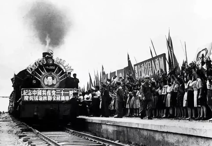 成渝铁路是新中国成立后修建的第一条铁路,是第一条完全由中国人自己设计施工、完全用国产材料建成的铁路。1952年7月1日,成渝铁路举行通车典礼,8万多人从成都火车北站广场排到人民北路,万人空巷;火车汽笛响起的时候,人群欢声雷动,场面之壮观,不少人喜极而泣。