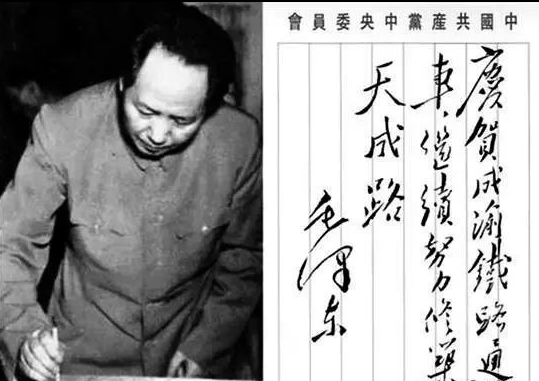为纪念修筑成渝铁路10万民工大军的历史功绩,缅怀在筑路中献身的民工英雄,1952年9月16日,中央人民政府铁道部决定修建西南铁路筑路民工纪念堂,次年春又在纪念堂前40米处修建了成渝铁路筑路民工纪念碑。毛泽东主席为此亲笔题写“庆贺成渝铁路通车,继续努力修筑天成路”(后来的宝成铁路)。
