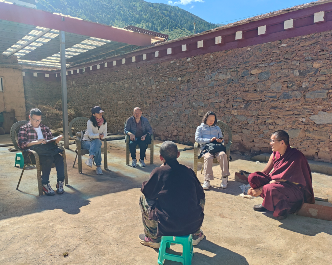 作家们在亚火乡和朴实的藏族群众面对面交谈