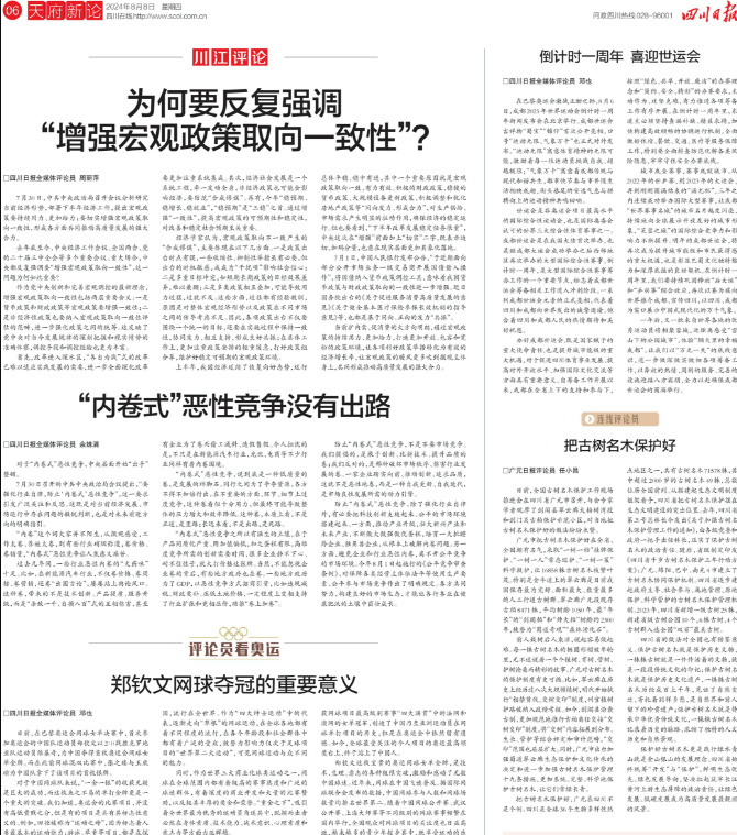 四川省的做法对全国也有借鉴意义。保护古树名木就是保护历史文物,一株株古树就是一件件活着的文物,就是一段段传统文化的印记;保护古树名木就是保护历史文化遗产,一株株古树名木历经成百上千年,见证了自然变迁、寄托着别样乡愁,是自然界和前人留下的珍贵遗产;保护古树名木就是传承中华优秀传统文化,一株株古树名木记录着历史的脉络,浓缩了独特的人文历史和自然景观。