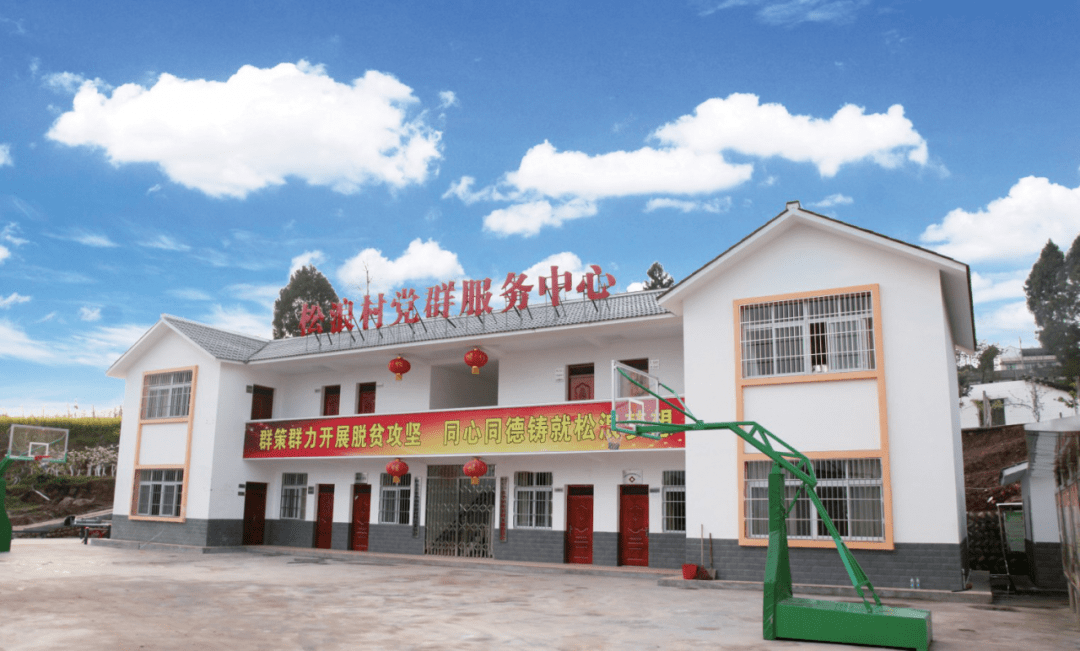很快我们在村委会下了车。村委会坐落在松浪村半山腰,白墙黛瓦,雕栏石柱,朱漆门窗;周围绿树红花,房后几株古柏苍苍翠翠。脱贫攻坚作战室、金融扶贫工作室、农家购物中心和电商平台、村委会办公室、农民培训中心、农家书屋、文化院坝、健身场所……应有尽有。一幅“群策群力开展脱贫攻坚同心同德铸就松浪梦想”的红色标语格外醒目,给人以精神和力量。