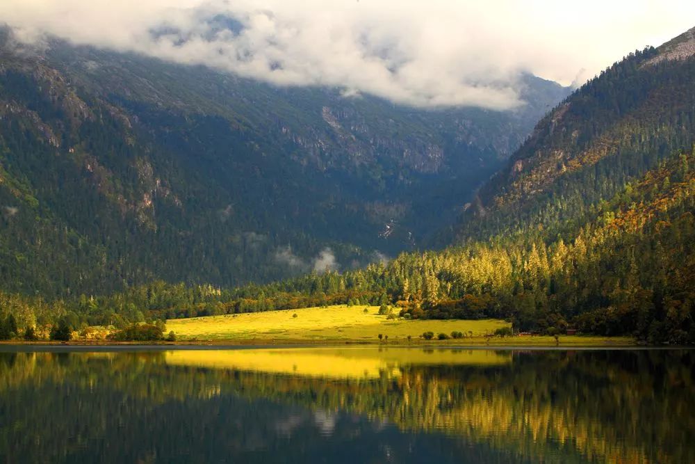 初秋时节,和煦的阳光眷顾着华丘俊秀的山峦,多彩的森林根连根、肩并肩,吉祥的经幡随着暖风微微飘扬,还有那甘甜的空气、雄健的牲灵、随遇而安的草甸……,一切的一切,被初秋的绚丽爱抚得熠熠生辉,一经触碰即使人发呆、沉醉。