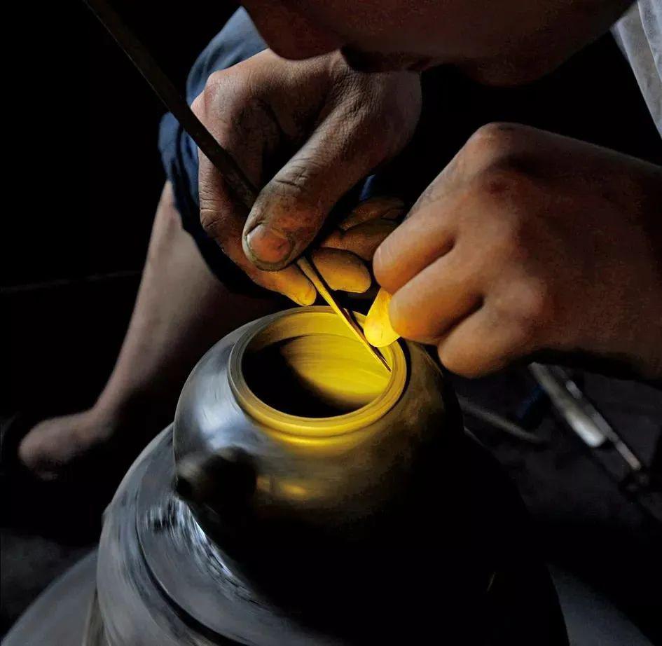 2012年7月,荥经县曾氏砂器厂,工艺师正在用当地特有的黑砂泥制作黑砂茶壶