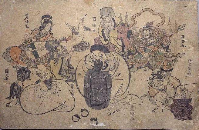 上图:朝鲜岁画鹊虎图;下图:日本七福神浮世绘年画 图/Wikipedia