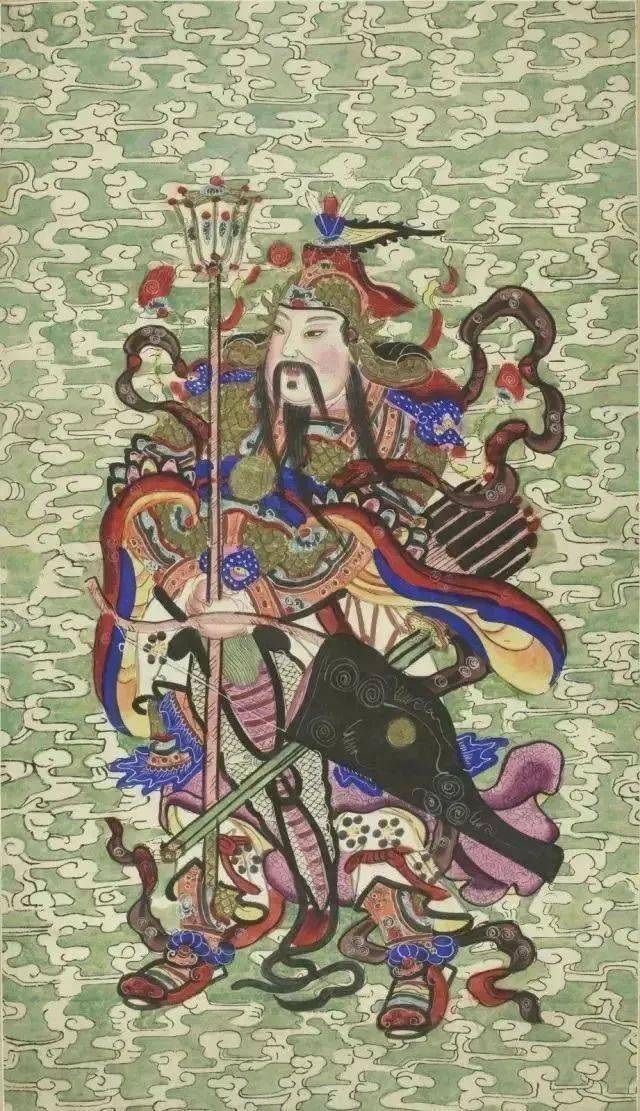 年画的起源,可追溯到人类远古时期对自然的崇拜观念和对神灵的信仰观念。《礼记》是中国古代一部重要的典章制度选集,书中主要了记载先秦的礼制,其《礼记·丧服大记》有记载:“君至,主人迎,先入门右,巫止于门外,君释菜。”郑玄解释:“释菜,礼门神也。”又解“释菜者,祝为君礼门神也。必礼门神者,明君无故不来也。”后来门神演变为年画,以“门神”为发展起源的年画,已有两千多年的历史。
