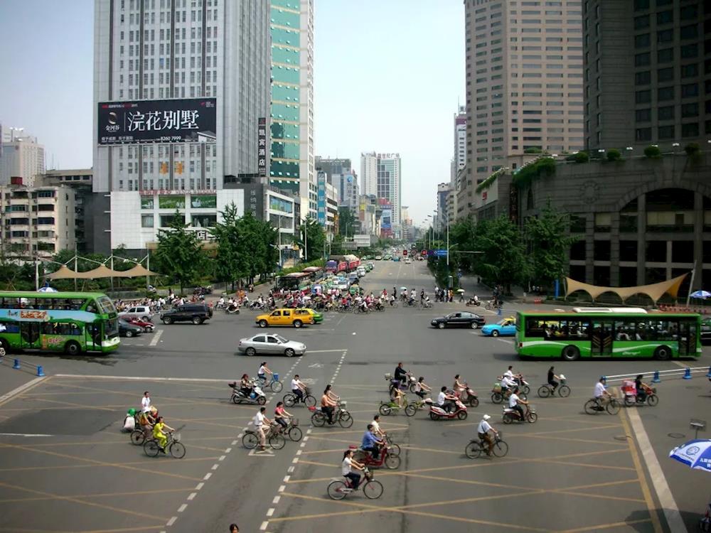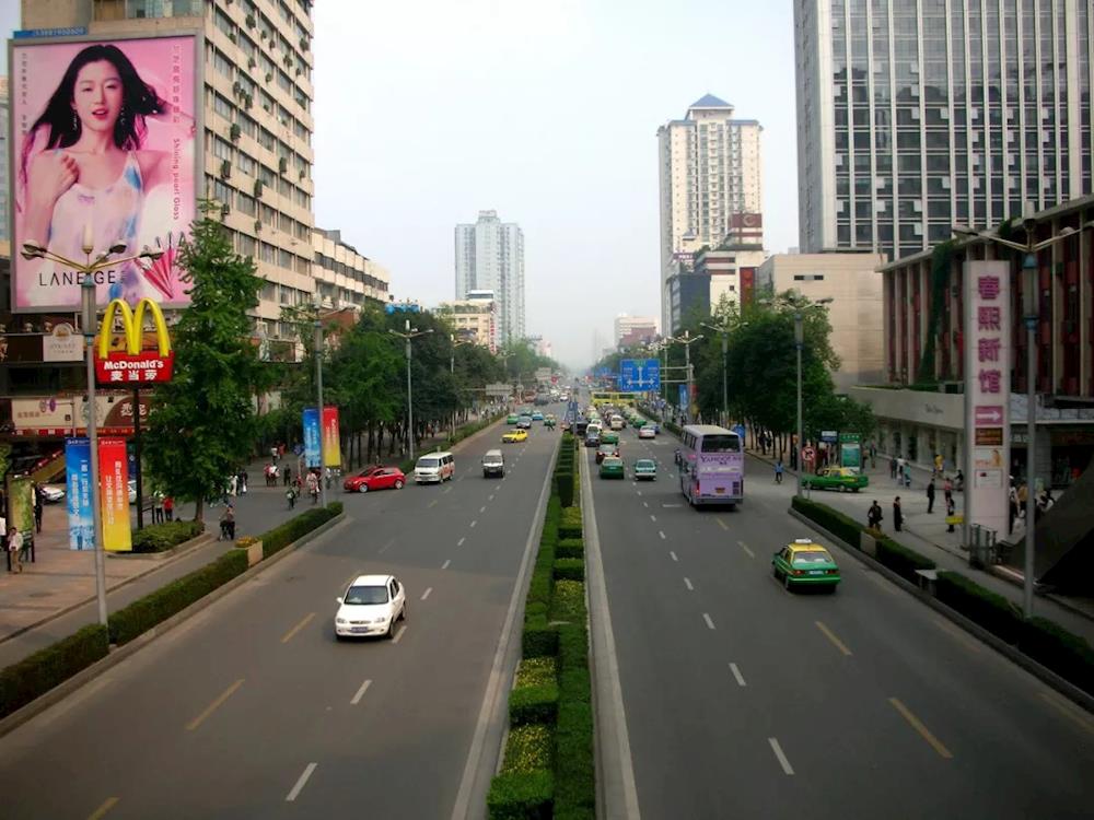 1996年,成都市中心街景。